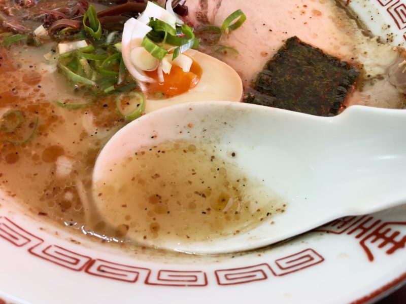 スープは豚骨で、にんにくも効いていますが、透き通っていてどちらかといえばあっさりめの熊本豚骨。