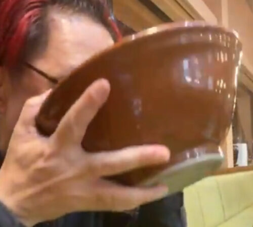 指を思いっきり開いて支えないと、どんぶり(すりばち)持てないっす。