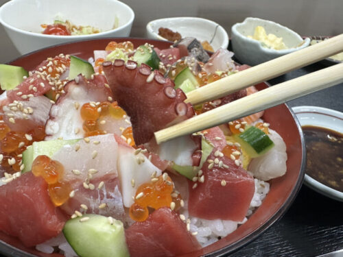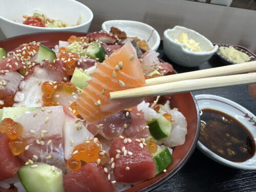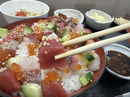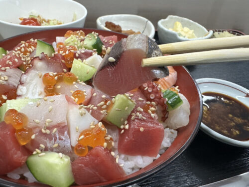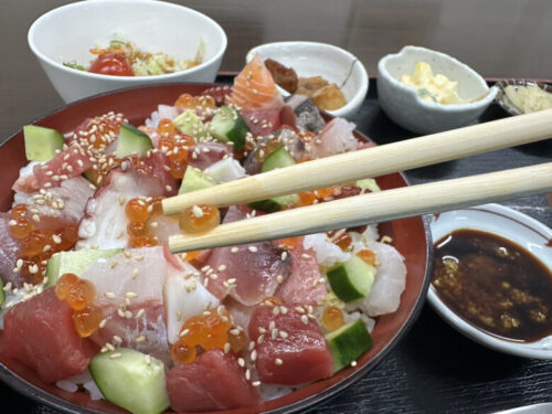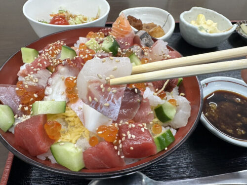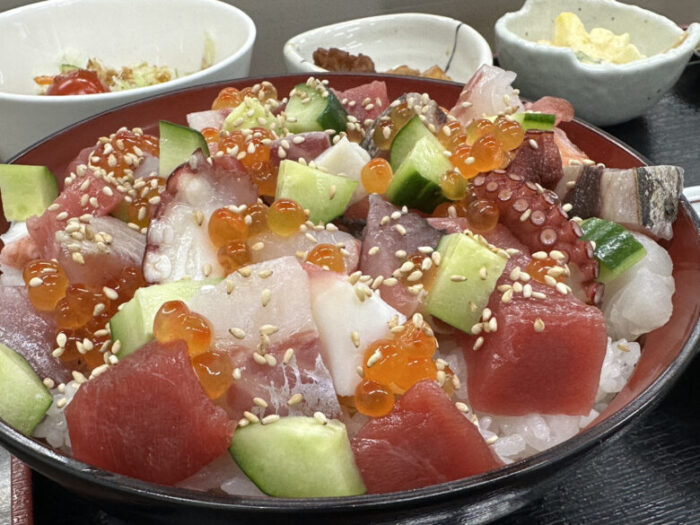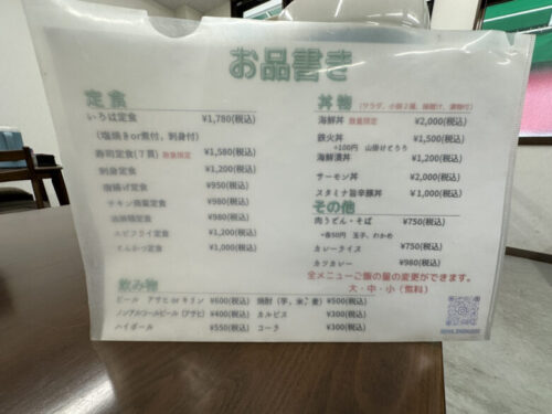 お店の方にお聞きしたところ、一番人気は日替わりの「海鮮ちらし(1300円」だそうで、早速注文しました。