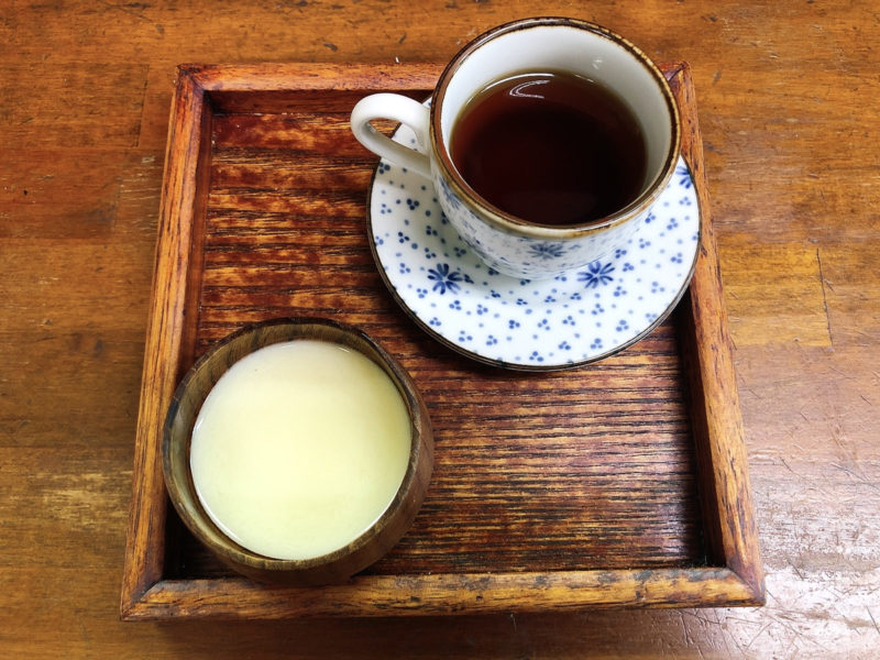 デザートに豆乳ゼリーとコーヒーをいただくことに。デザートまで豆腐づくし!