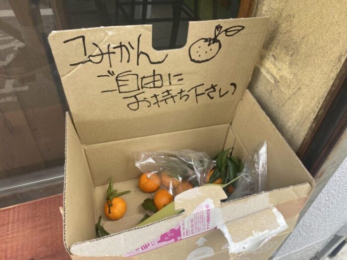 例えば冬になるとよく見かける「ミカン売ってます」という風景。あれ、心が温かくなって好きなんですよね。