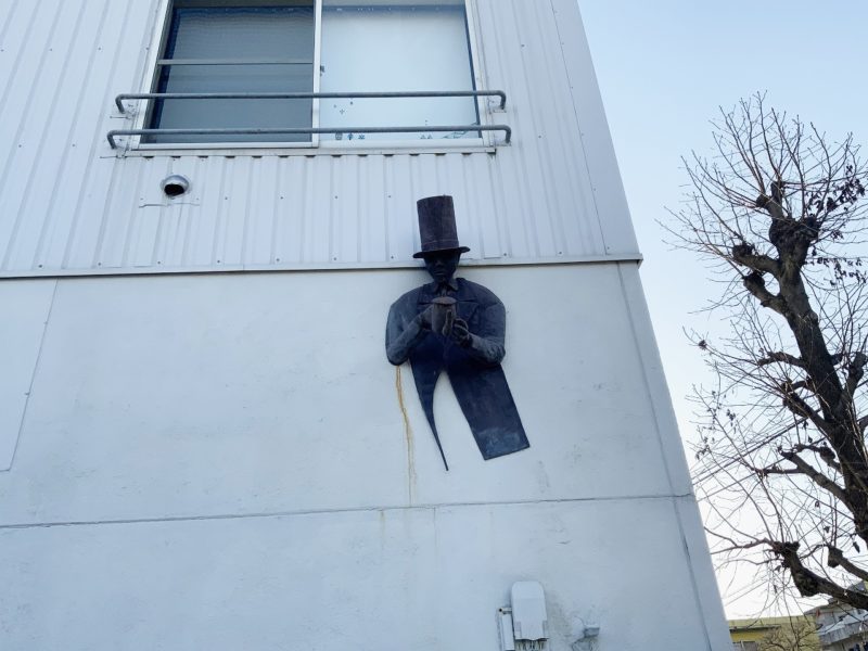 外壁には謎の紳士。