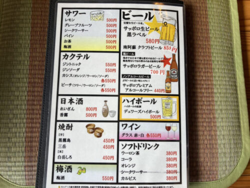 飲み物はアルコールが充実。あぁ、囲炉裏でビールなんて最高ですよね