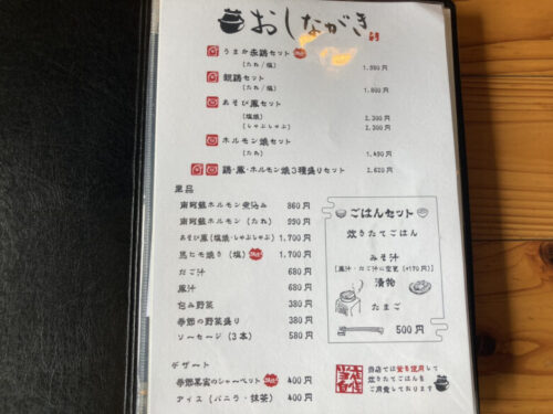 メニューはこちら。セットメニューには「炊きたてご飯・みそ汁・漬物・たまご」がついています。