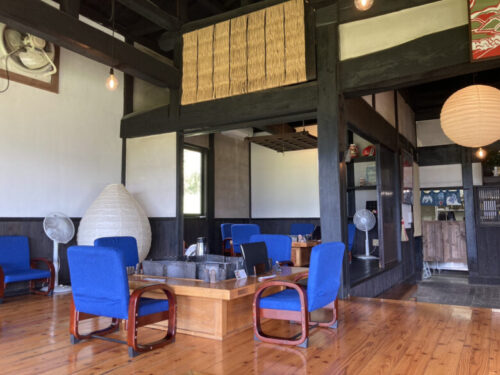 店内も囲炉裏があり、和な雰囲気。阿蘇の田園風景が目の前に広がっています。