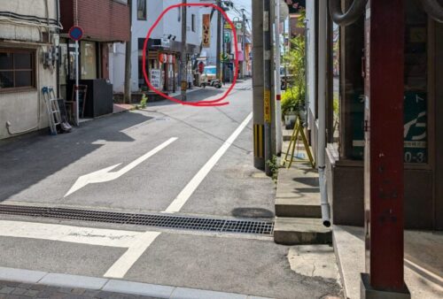 「勇(いさむ)」は電車通りを背に健軍商店街を進み、2本目を右に曲がると20mほど先に