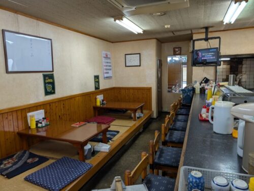 奥まで見渡せる店内は「THE 昭和」なお食事処。