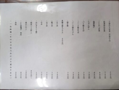 こちらがお食事メニュー。