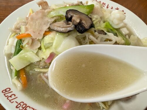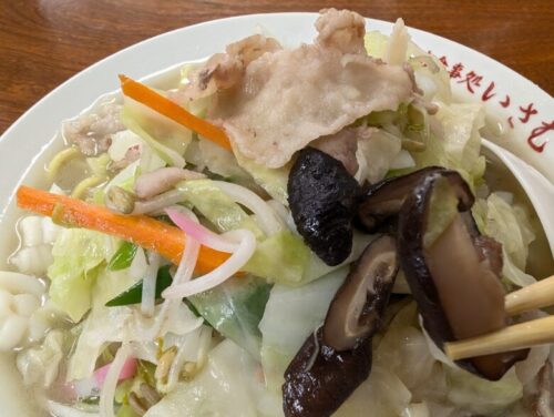 麺はどこだ!?野菜に埋まる名物ちゃんぽんは、シイタケ香るあっさりちゃんぽん!