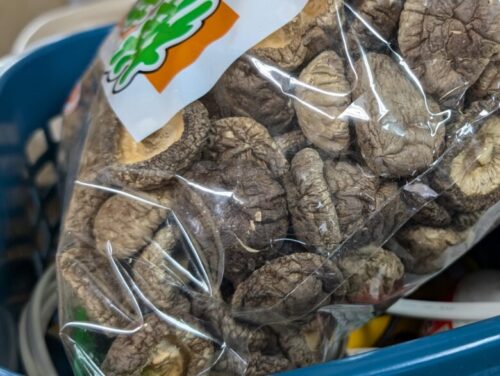 店の隅に見つけた大量の干しシイタケ。
