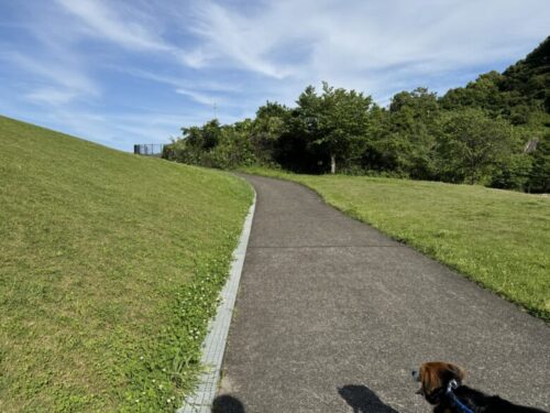 展望台に向かう為に、運動靴を履いて、ジャージで向かいました。犬同伴可なので、この日は犬も連れていきました。