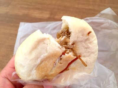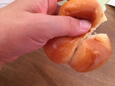 こちらの、よつばパンは小さくて可愛いテーブルロールです。パンを割ると、ふわっと焼きたてのいい匂がして優しい味がしました。