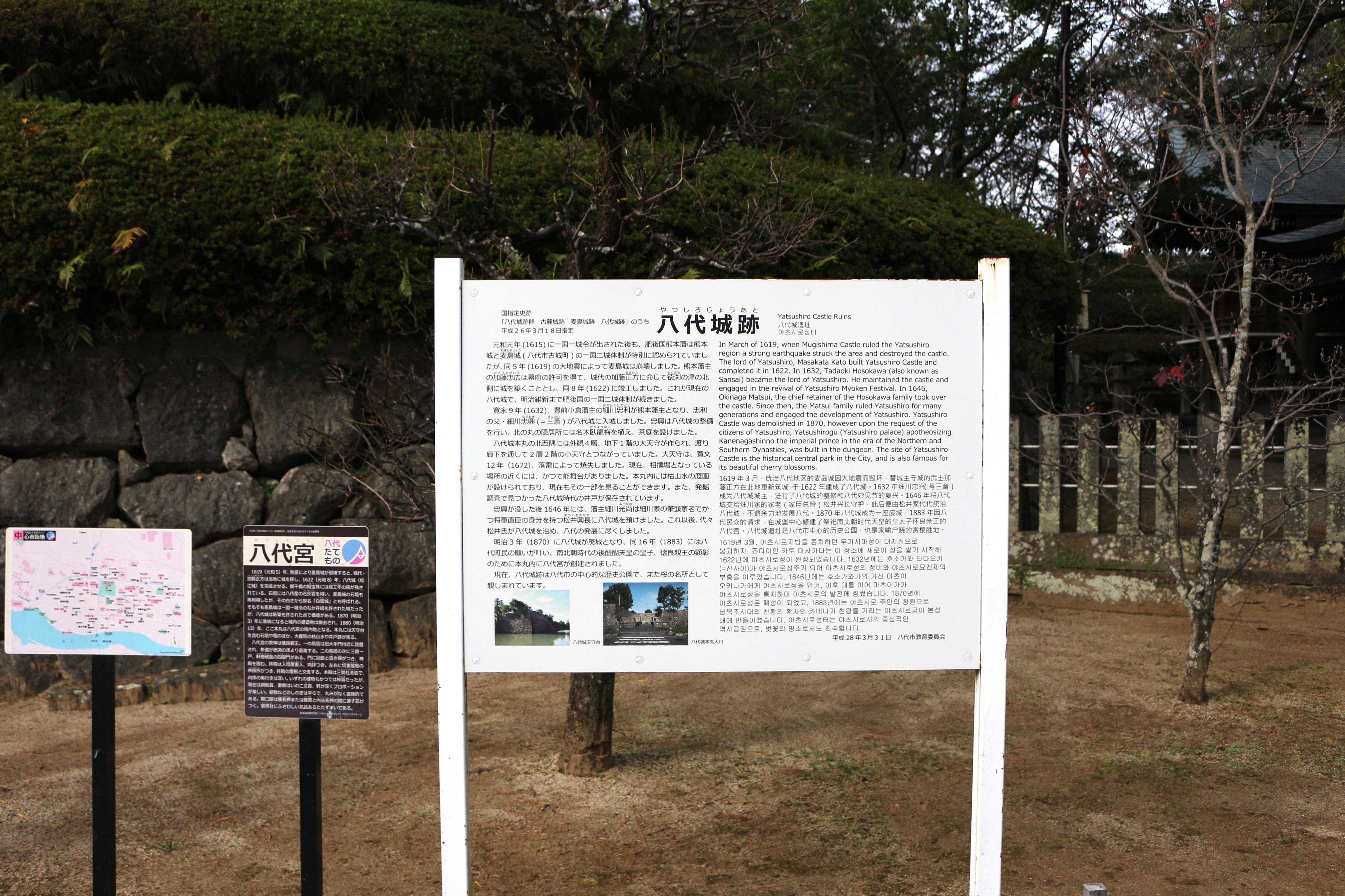 八代城跡には現在、石垣のみ残っており、これは八代産石灰岩で築かれたそうです。