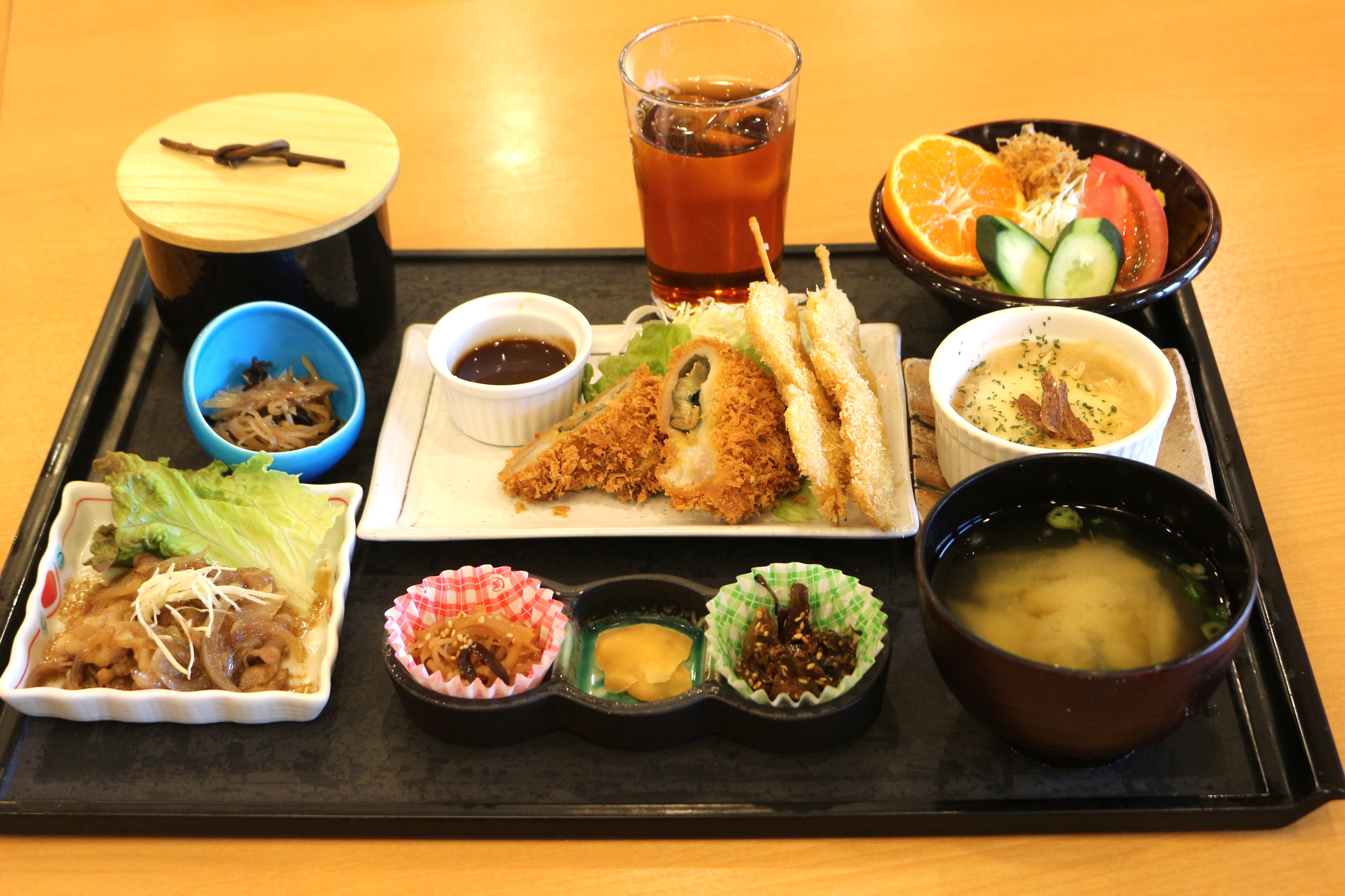 メインのお料理は生姜カツ。カツには大葉とチーズを巻いてあって満足度も高い一品。