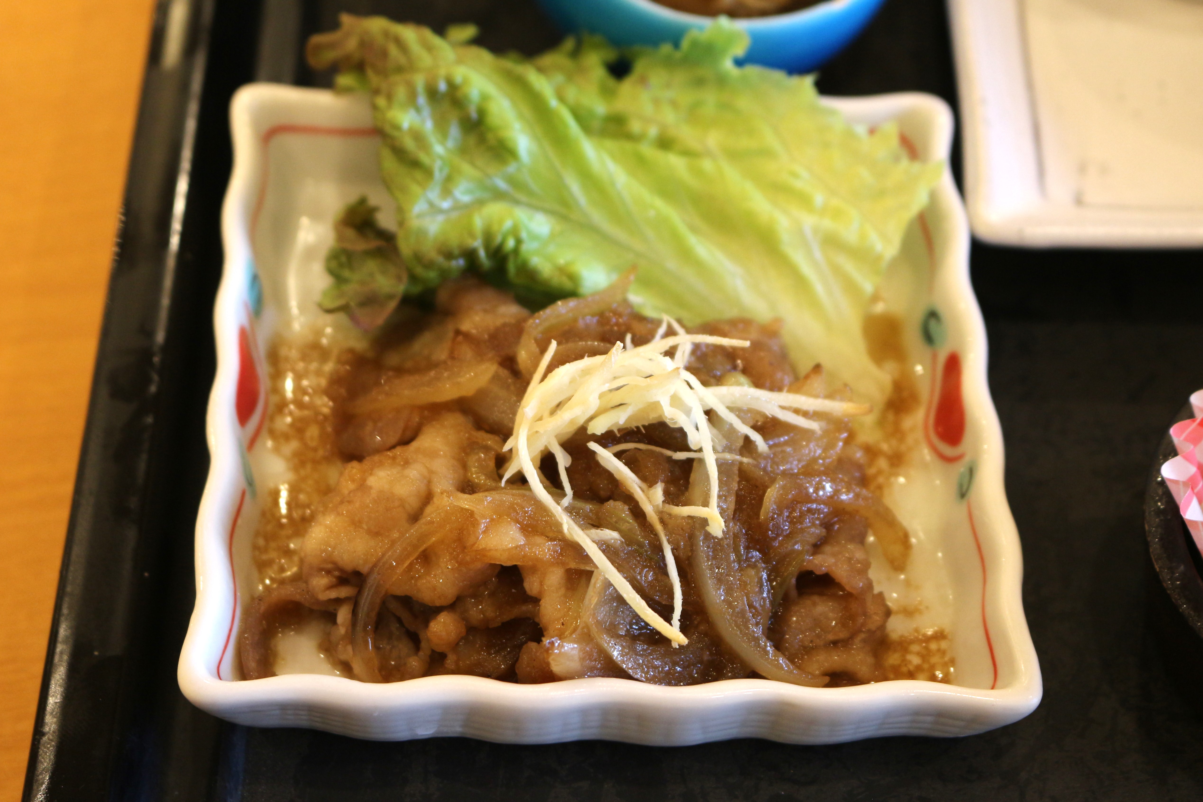 まずは、定番人気の豚の生姜焼き。豚肉の上にも生姜がトッピングされている程の生姜推し。