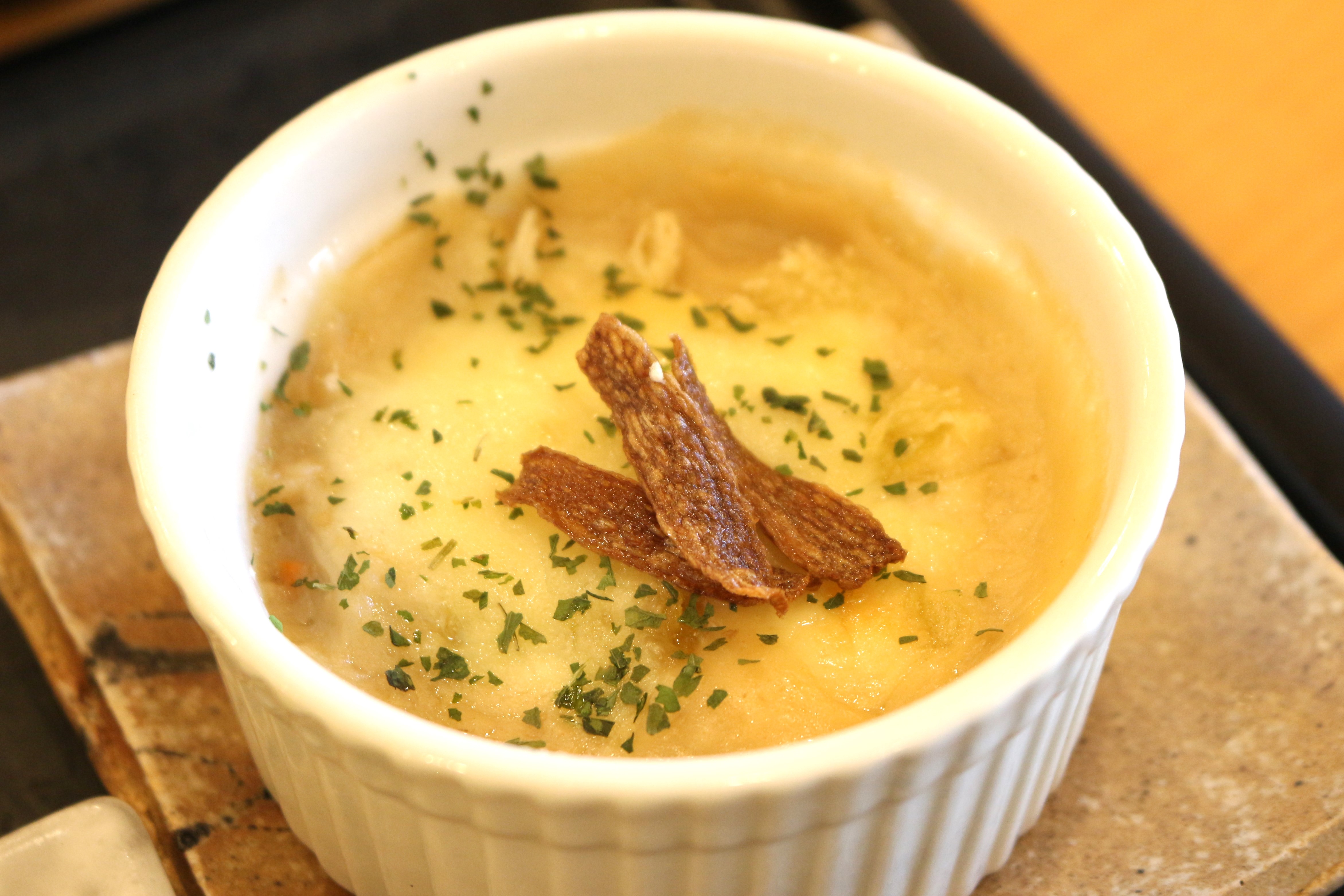 さらにはグラタンにも生姜が。大ぶりにカットされた生姜がたっぷり。存在感抜群のグラタンです。