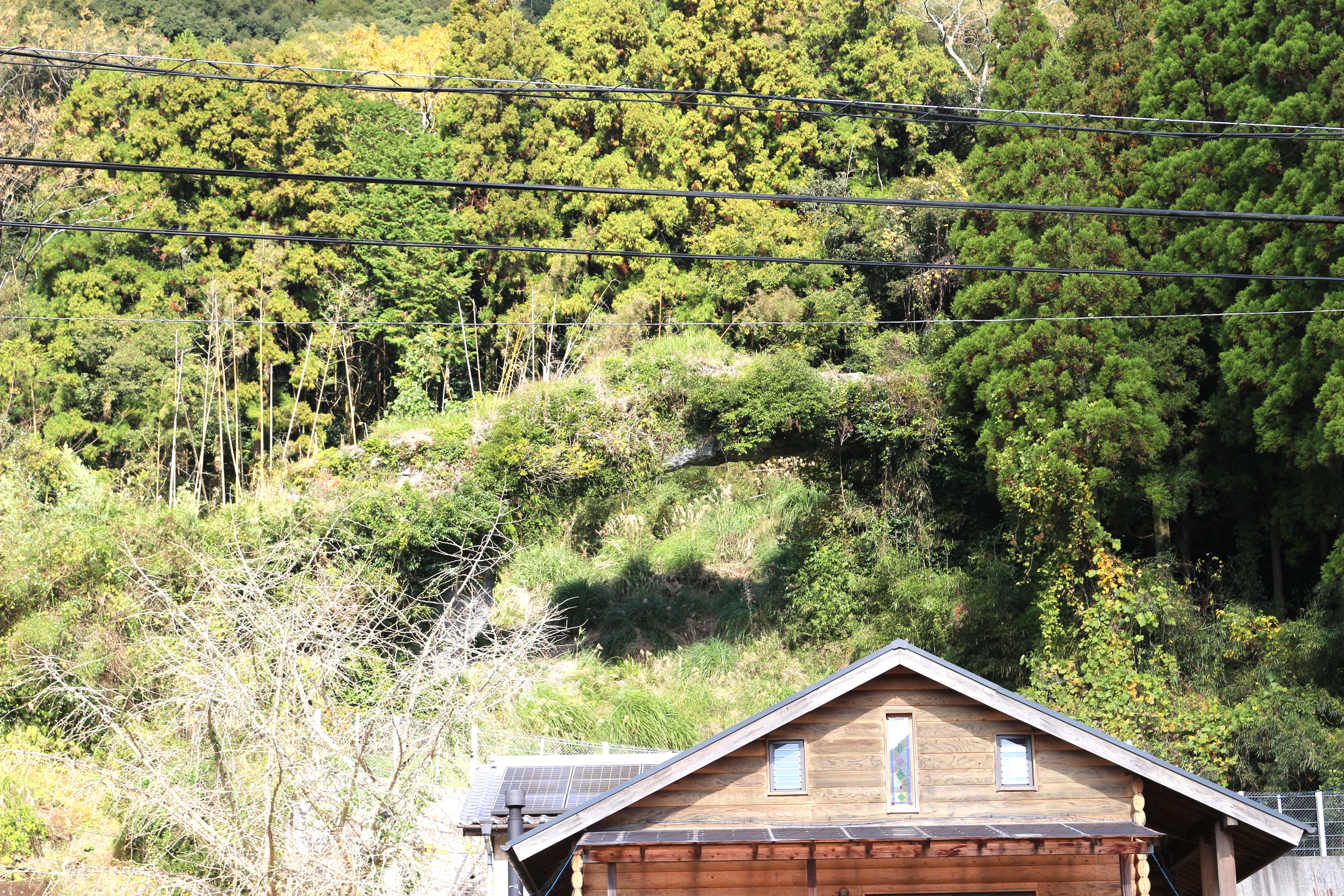 しかし、この地域の伝説では、白髪岳の神様が山を下りて来る際に大岩を蹴り破ったことで出来たとも言われているそう。江戸時代の地誌『肥後国誌』にも書いてあるんですって。本当のところは分からないですが、八代の石工たちはこの天然橋を見てインスピレーションが湧いたそうな。石工の原点ですね。
