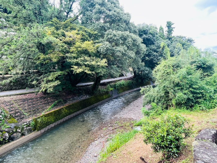 その下を流れる川は、水が澄んでいてとてもキレイ!癒される光景です。この川辺を散歩するもの良いですね。