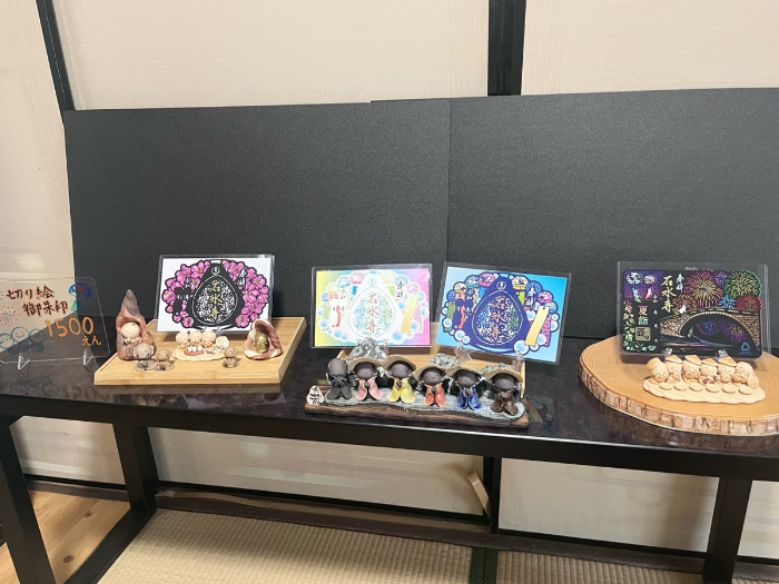 本堂で御朱印もいただけます。通常の御朱印に加えて、熊本ではまだまだ珍しい、切り絵の御朱印もあります。