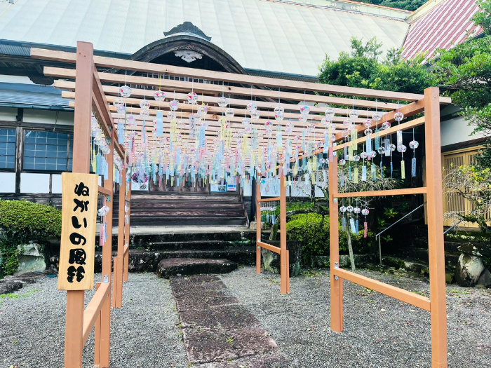願いを書き上げたら本堂前に風鈴を飾ります。