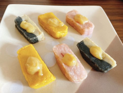 カラフルな生麩が6切れ、ちゃんと下処理してあるので電子レンジで温めるだけ。