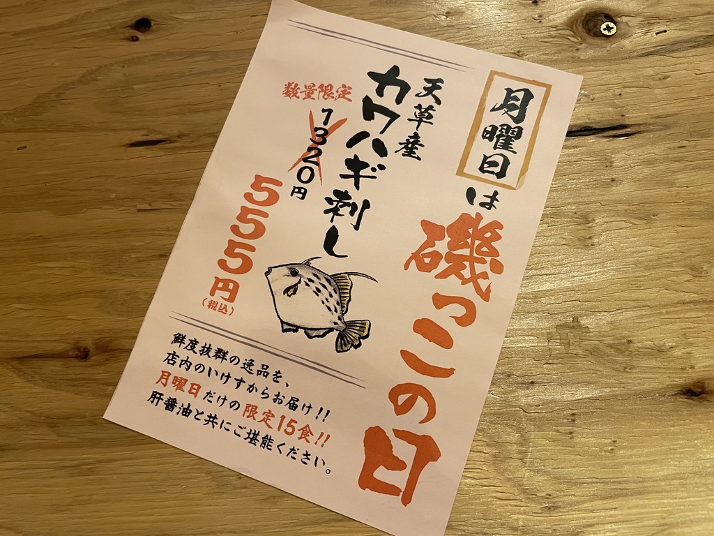 カワハギは限定15食なので、電話予約が賢いです。
