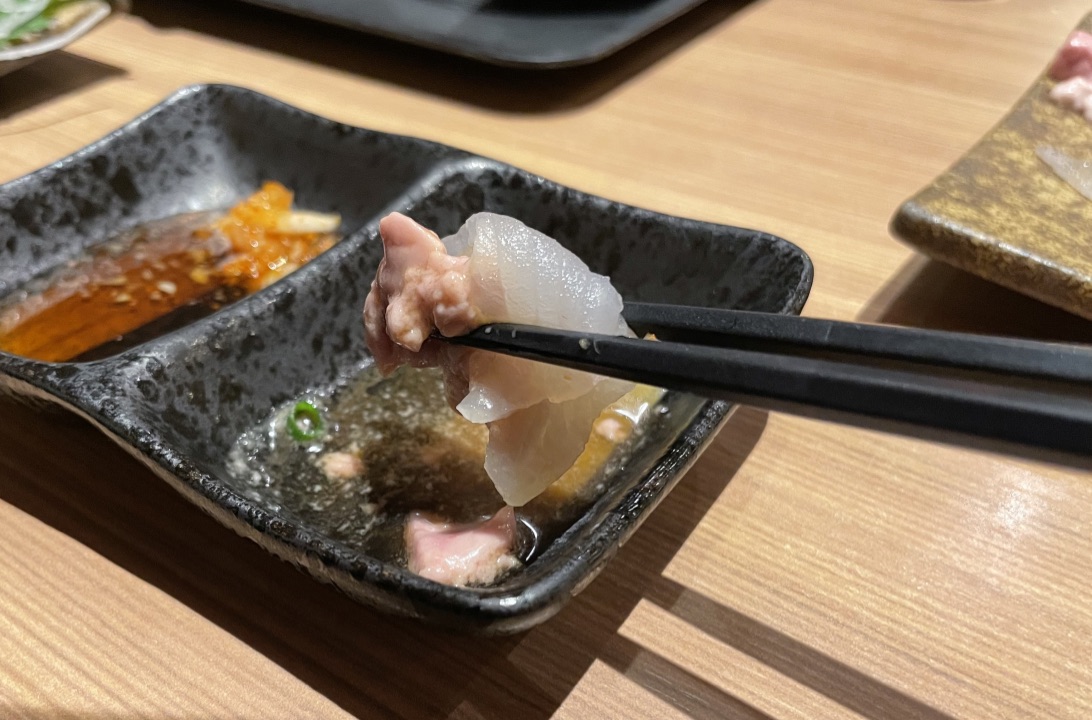 透けるほど薄いのですが、歯ごたえシッカリ残ってて、その中から肝の「とろけ」が濃厚な味とともに、脳内を占拠していきます。