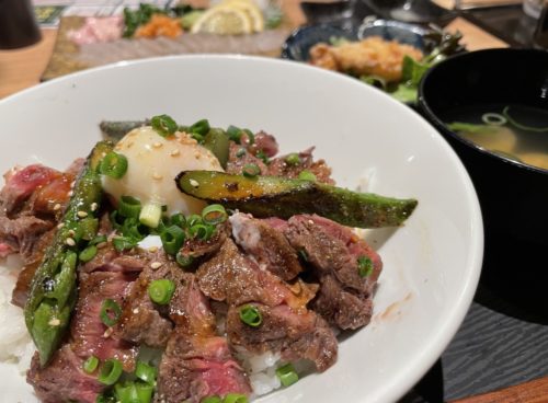 あか牛丼とカワハギの刺身という夢