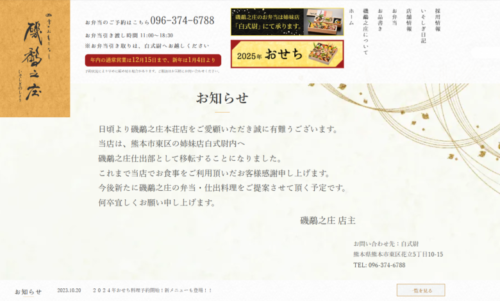 「そうですね。うちも人員不足です。ただ、閉店というよりも姉妹店である白式尉内へ、磯鷸之庄仕出部として移転したので正しくは業務内容を仕出しに変更しての移転です」