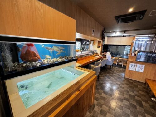 店内に入ると綺麗な生簀からお魚さんやサザエさんたちがお出迎えしてくれます
