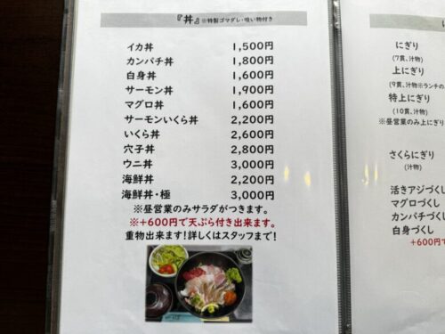 海鮮丼でも頂こうかと思ってメニューを開いたら