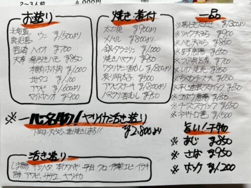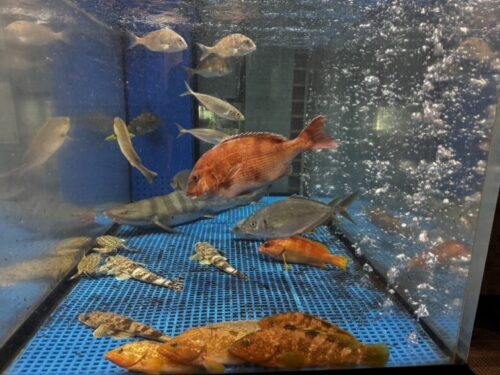 お魚中心のメニュー。生簀があるので、魚の鮮度が抜群。