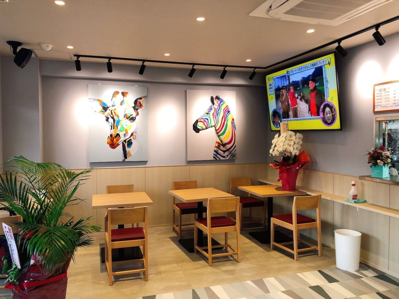 店内に入ると、おしゃれな絵画がお出迎え!シンプルな店内をカラフルな絵画が引き立てています。