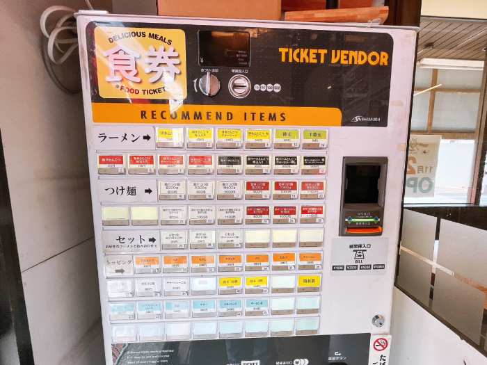 ここで、お財布に1,000円札がないことに気付きました。しかし、この食券機は5,000円札も10,000円札も使えます。両替せずにそのまま買えるのがありがたいですね!