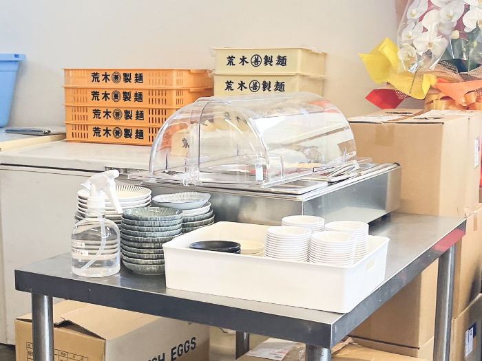 紅ショウガなどの薬味やお水はセルフサービス。ご自身でお好きなだけ。