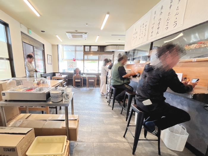 店内はテーブルとカウンター席があります。おひとり様も多く、気を張らずに入れます。