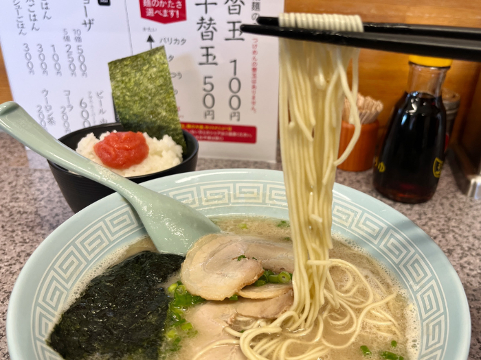 しっかり豚骨の旨味が凝縮されたスープと、スープに絡む細麺の相性バッチリの博多ラーメンは絶品でした。