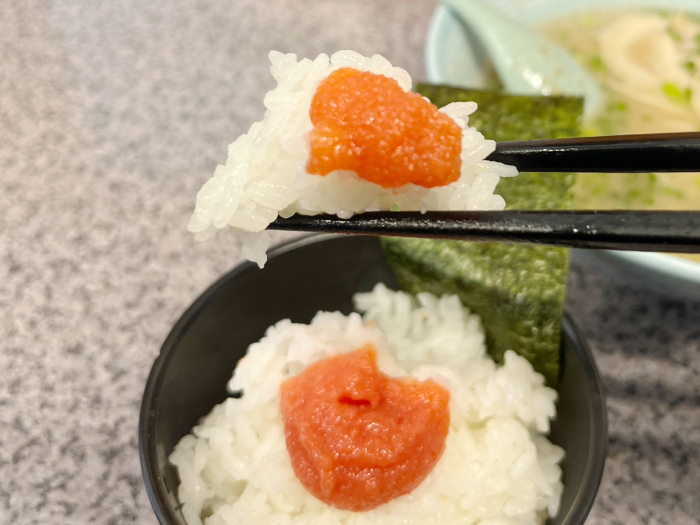 しっかり味が付いている明太子は白米が進みます。意外なことに、とんこつラーメンとの相性もばっちり。ガツンとパンチの聞いた明太子に、まろやかなとんこつスープ。最強な組み合わせです。