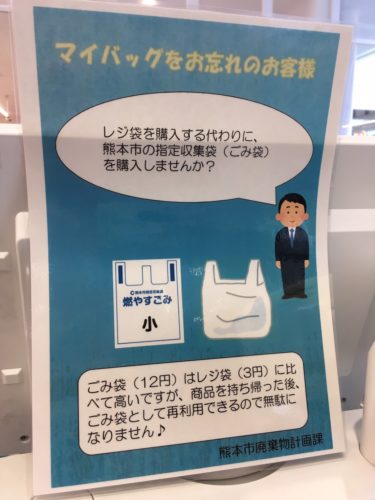 特売品などをゲットしてレジに持っていくと、熊本市廃棄物計画課からの貼り紙を発見!