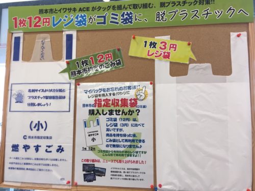 熊本市とイワサキACEが提携し、プラスチックごみ削減に向けて始めた、指定ごみ袋販売の取り組み。9月17日から3ヶ月ほど試行され、市民の反応を検証して、今後に活かされるそうです。レジ袋を買っても、必要なくてすぐに捨ててしまうという方は、ごみ削減のためにも、指定ごみ袋を買ってみると良いかもしれませんね。