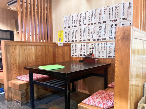 店内は、カウンター席にテーブル席、その奥にお座敷席があるつくり。
