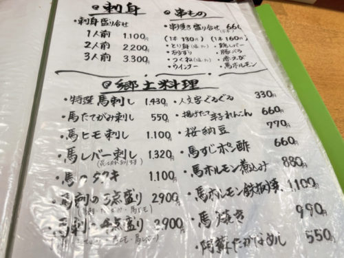 メニューも手書きで味があります。刺身に串。そして、郷土料理も豊富です。