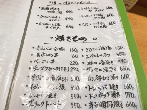 壁には手書きのメニューがずらりと並んでいます。こういうところがTHE居酒屋という感じがしますね。