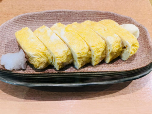 玉子焼きはふわふわで柔らか。出汁が効いていて、口の中でじゅわっと広がります。
