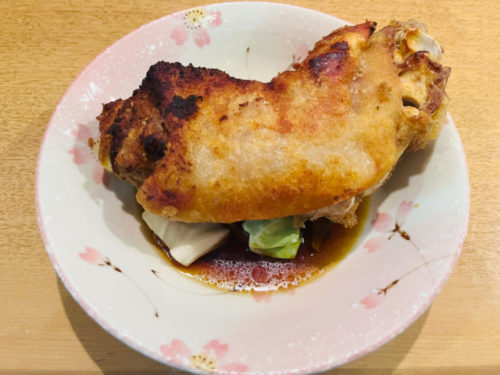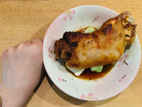 しばらく待つとやってきました!とん足は揚げるか焼くか選べるのですが、私は揚げとん足を選択。
