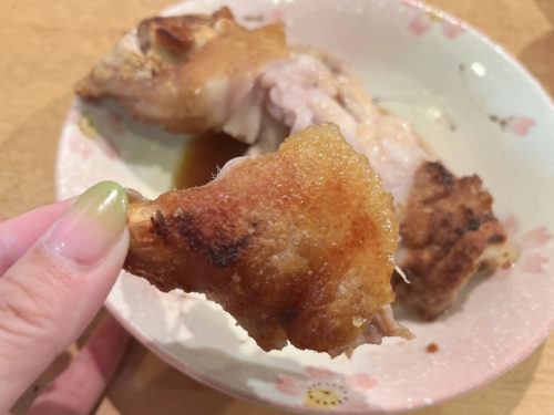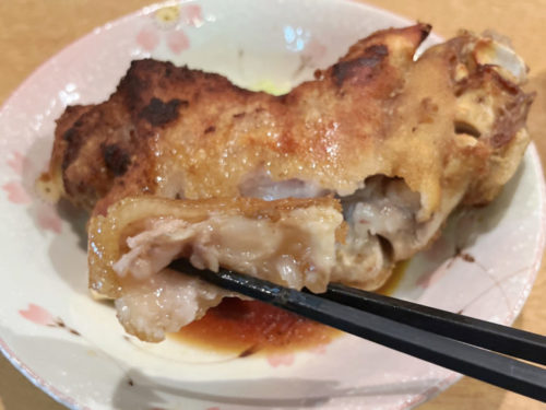 とん足は一般的なサイズ。こぶしよりもちょっと大きい。これが100円とはサービスにしても安い。