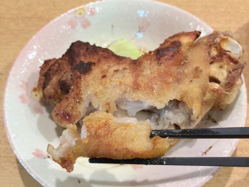 カリっと揚がったとん足。箸で割ると中からコラーゲンがこんにちは。