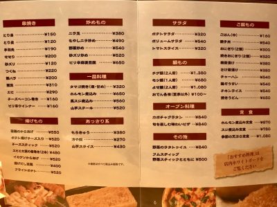 ひと目見て、昭和的居酒屋メニューの基本のようだと思いました。やきとりにはじまり、煮込み料理や揚げ物、そしてご飯もの。このお店の良いところは、夜の定食メニューがあるところです。それも、リーズナブルなお値段で良心的です。