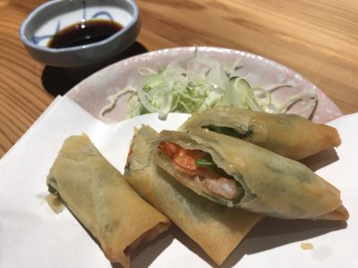 熱々の春巻きは、エビのプリプリ感と大葉の存在がバッチリ。最後に大葉の味がきいてきます。