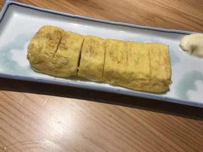 玉子焼きは甘めと塩味の二種類があり、今回は甘めにしました。家庭の味付け感たっぷりの一品です。